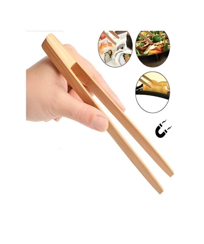 Generic - ملاقط غير لاصقة - ادوات طبخ من الخيزران صديقة للبيئة لتحميص الخبز وشوي اللحوم وتقديم اطباق الشواء اللذيذة