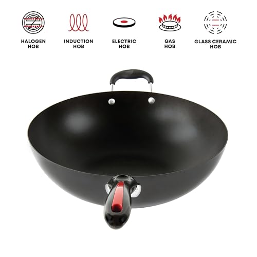 - طاسة قلي عميقة مقاس 34 سم مصنوعة من الصلب الكربوني المتين، مما يضمن أداءً يدوم طويلًا ومقاومة للاعوجاج، مما يجعلها خيارًا مثاليًا لمختلف طرق الطهي، بما في ذلك البوتاجازات التي تعمل بتقنية الحث والتي تعمل بالغاز والهالوجين والكهرباء والسيراميك.