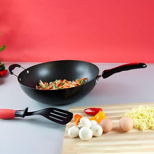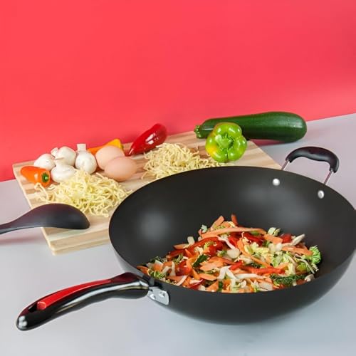 Generic - طاسة ووك مقاومة للالتصاق- طاسة قلي جامبو 32 سم للطهي متعدد الاستخدامات للشاورما والنقانق والشنتزل وغيرها حلة طهي متينة مطلية بالتفلون للاستخدام اليومي في المطبخ