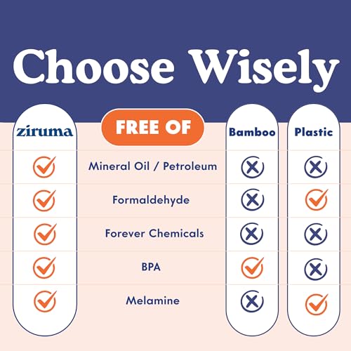 - خالية من المواد الكيميائية للأبد: ألواح التقطيع زيروما خالية من المواد الكيميائية إلى الأبد مثل BPA والفثالات والمشتقات البترولية مثل الزيوت المعدنية. يمكن أن تكون هذه المواد الكيميائية ضارة بصحتك وبيئتك.