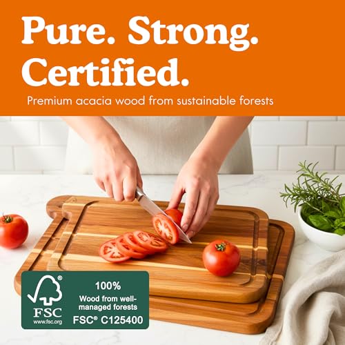 Ziruma - الواح تقطيع غير سامة - مجموعة الواح تقطيع خالية من الزيوت المعدنية، مصنوعة من خشب الاكاسيا اف اس سي - الواح تقطيع للمطبخ - تتضمن 3 الواح تقطيع. زيروما