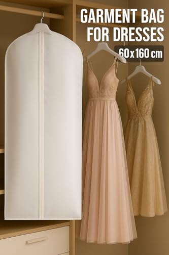 Generic - شنط ملابس غير منسوجة للفساتين، جيدة التهوية وقابلة للطي ومتينة مع سوستة - 60 سم × 1.60 م، أبيض، عبوة من 5 قطع