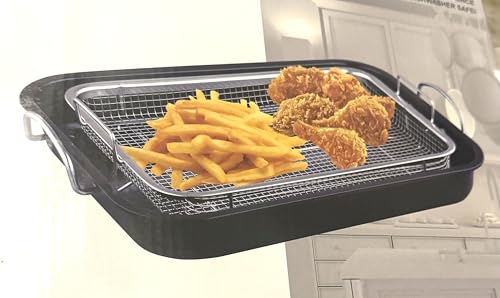 H-Home - صينية غير لاصقة من كريسبر لاستخدام دهون أقل، صينية خبز وقلي هوائية للفرن، تحول الفرن إلى مقلاة هوائية صينية تحمير وقرمشة غير لاصقة، سلة قلي بالهواء بالفرن صينية خبز بالفرن، لون أسود