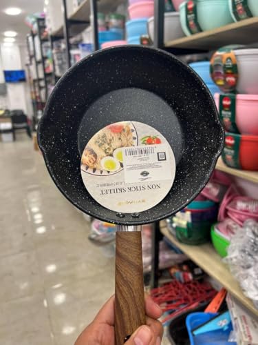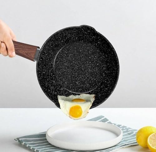 Generic - مقلاة غير لاصقة بمقبض قوي ، قاومة للخدش والبقع ومقاومة للالتصاق، مقلاة من الالومنيوم المصبوب مقاس 18 سم، لون اسود