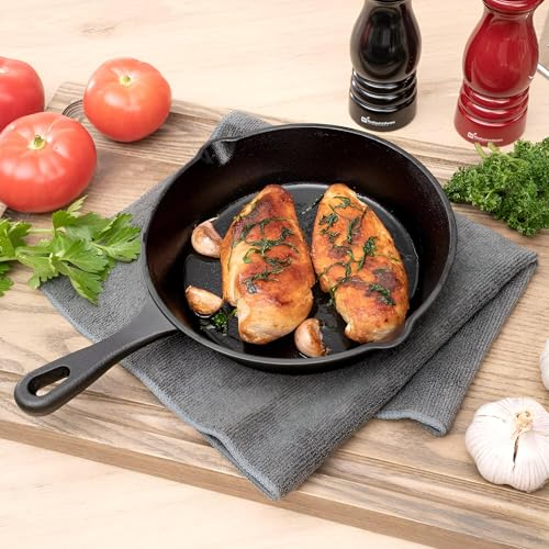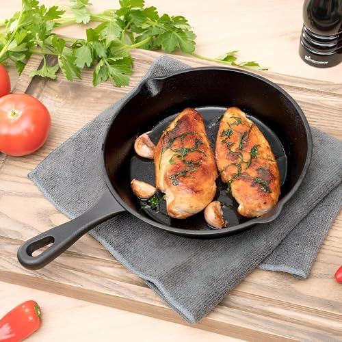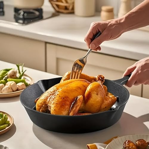 - الأداء والمتانة: مصنوعة من الحديد المصبوب القوي، فهي تطبخ بالتساوي الأطباق الجانبية والوجبات المقلية والأطعمة المقلية، مما يوفر تحميرًا موحدًا واحتفاظًا ثابتًا بالحرارة يحافظ على الطعام أكثر دفئًا لفترة أطول على الطاولة. لحماية السطح والمظهر، يوصى بالغسيل اليدوي للحفاظ على اللمسة النهائية المتبلة مسبقًا عالية الجودة.