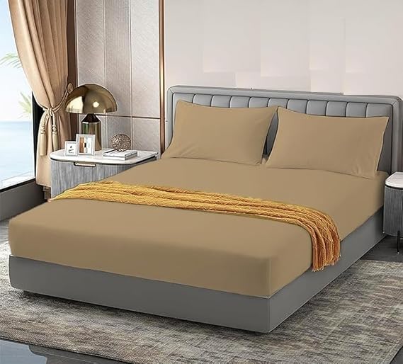 Generic - طقم ملاية استيك سادة للفنادق والمنازل والقري السياحية من نونو ستور مكون من ثلاث قطع كافيه 120سم *200سم*30سم لون كافيه قطن