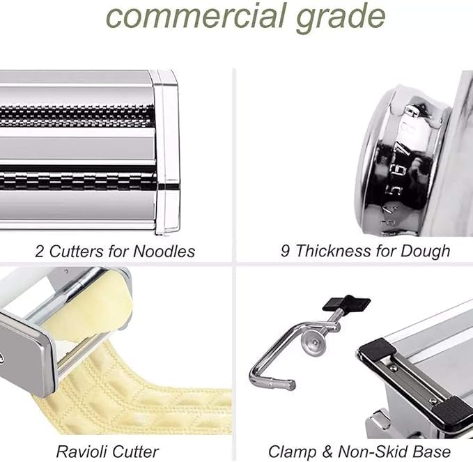 Generic - ماكينة صنع المكرونة والنودلز والعجين من فولاذ مقاوم للصدأ، أداة تقطيع يدوية لصنع الفطير والخبز المسطح والفتة والماكرونا واللازانيا والرافيولي والمعجنات المصرية، 1.50 م