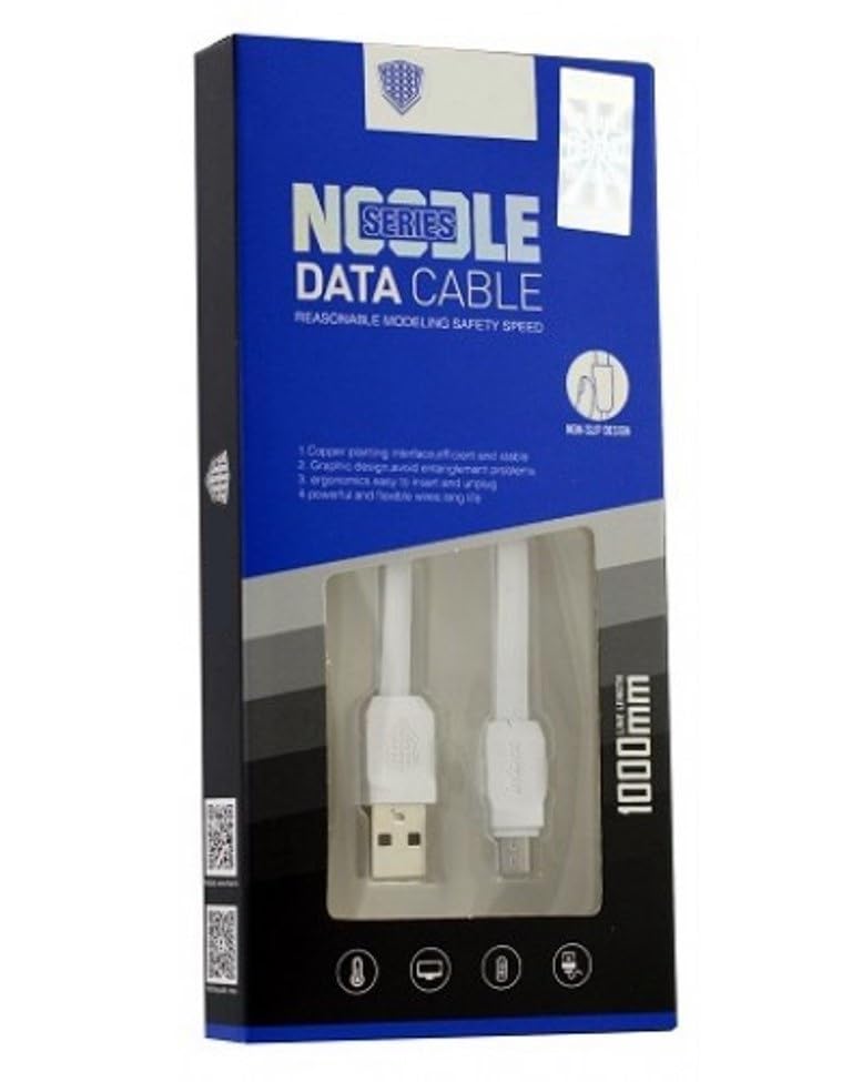 Generic - كابل شحن وداتا عريض للموبايل موديل نودل سيريز CK 17 MICRO لجميع انواع الموبايلات والباور بنك بقوة 2.1 امبير بطول 1 متر - USB الى وصلة مايكرو ابيض لروتر
