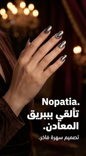 - تصميم "سمارت فرنش" (Smart French): اكتشفي الجيل الجديد من تصاميم الفرنش مع طقم Nopatia المكون من 12 ظفراً. يبتعد التصميم عن الخطوط التقليدية ليقدم "فرنش" بأسلوب تجريدي يشبه ضربات الفرشاة الفنية أو المعادن المنصهرة.
