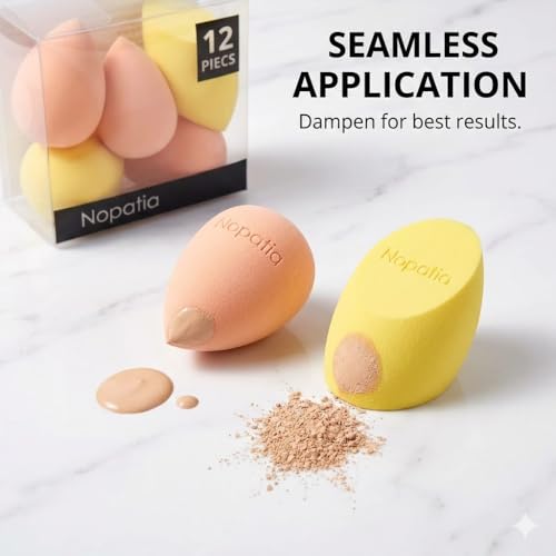 Nopatia - طقم إسفنجات مكياج "بيوتي بلندر" احترافي 12 قطعة من Nopatia مجموعة متنوعة الأشكال لدمج الفاونديشن والكونتور وتوزيع البودرة، أدوات تجميل ناعمة بلمسة نهائية انسيابية