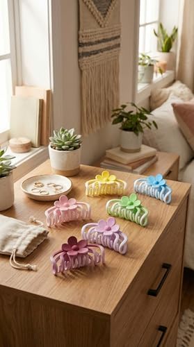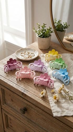 - تصميم زهرة "ديزي" الجذاب: يتميز كل مشبك بزهرة بارزة على الجانب بتفاصيل دقيقة، مما يضفي لمسة من الأنوثة والرقة على تسريحة شعركِ سواء كانت عفوية أو منسقة بعناية.
