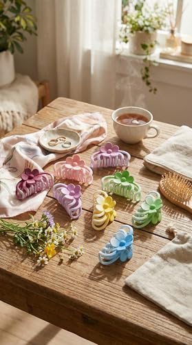 - حجم كبير وعملي: تعتبر هذه المشابك الأداة الأسرع لتنسيق شعركِ؛ فهي مثالية لرفعه بالكامل أو لعمل "نصف رفعة" أنيقة في العمل، المنزل، أو أثناء السفر والرحلات.