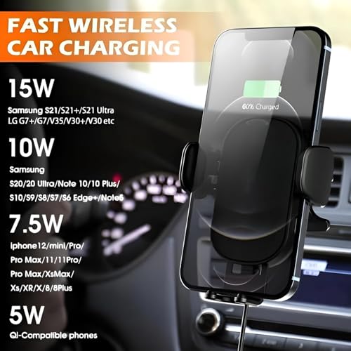 Nopatia - شاحن سيارة لاسلكي سريع بقدرة 15 واط من Nopatia مع حامل هاتف لمخرج الهواء وقفل تلقائي ودوران 360 درجة مخصص لهواتف آيفون وسامسونج