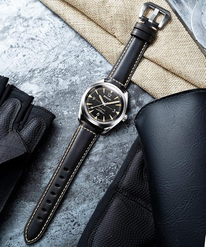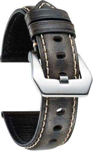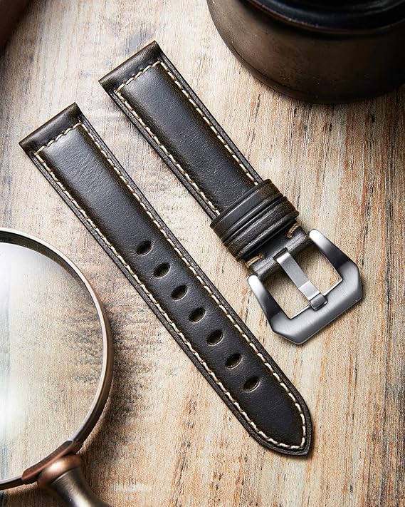 V Volt - سوار ساعة في فولت 22 ملم متوافق مع ساعة سامسونج جالاكسي 3 45 ملم / ساعة 46 ملم / جير S3 / هواوي ووتش GT2E/GT2 برو/GT2 46، سوار جلد طبيعي مصنوع يدويا مع مشبك من الستانلس ستيل