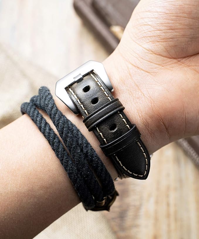 - [متوافق مع الساعات المتعددة]: تم تصميم هذا السوار ليناسب أكثر من نوع واحد من الساعات الذكية. يمكن تركيبه بسهولة مع مجموعة واسعة من الساعات، مما يجعله خيارًا متعدد الاستخدامات ويضيف لمسة فاخرة إلى أي ساعة ذكية. لا داعي للقلق بشأن الملاءمة، فالسوار يناسب معصمك تمامًا.