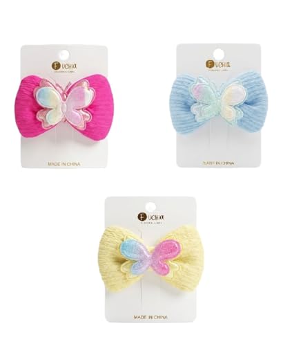 Nopatia - مشبك شعر من Nopatia فيونكة قماشية بتصميم فراشة ثلاثي الأبعاد لامعة وجليتر، توكة رأس أنيقة للبنات والأطفال، إكسسوارات شعر قوية لتثبيت التسريحة للمدرسة والمناسبات اليومية (3 قطع)