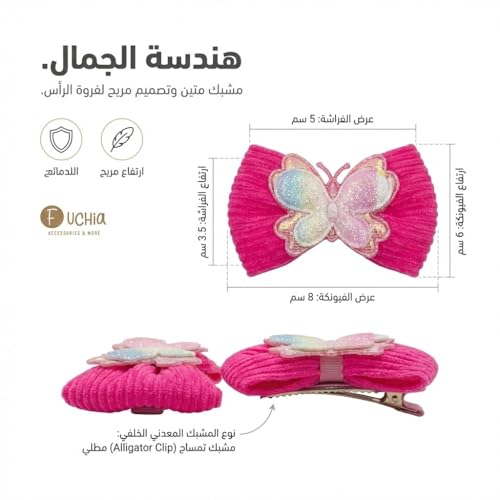 - تصميم فراشة 3D لامع يخطف الأنظار: فيونكة قماشية بتفاصيل فراشة ثلاثية الأبعاد مع لمسة جليتر براقة تضيف أناقة وجاذبية للتسريحة، مثالية لإطلالات المدرسة والحفلات والمناسبات الخاصة للبنات والأطفال.