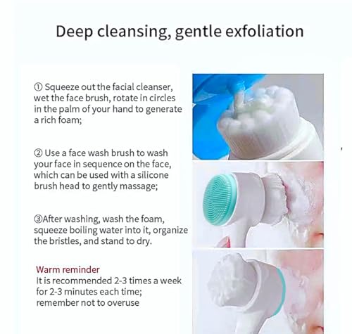 - تصميم ثلاثي الأبعاد مزدوج الجوانب: تتميز هذه الأداة بوجهين متطورين؛ جانب يحتوي على شعيرات ناعمة جداً للتنظيف اليومي، وجانب آخر من السيليكون المرن المخصص للمساج، مما يوفر تجربة عناية متكاملة بقطعة واحدة.