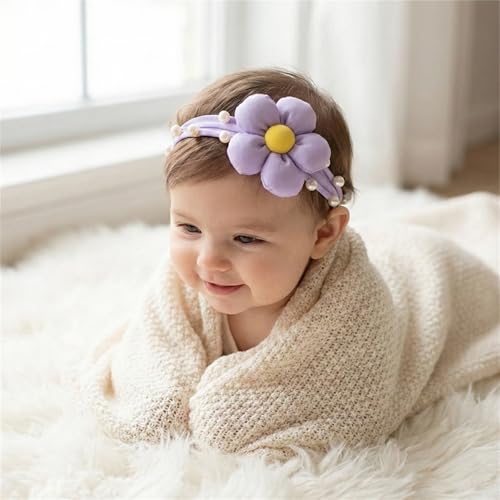 Nopatia - عصابة رأس من Nopatia للأطفال والرضع بنات مزينة بوردة قماشية وردية ولولي مريحة ومرنة للشعر مثالية للمناسبات تمنح طفلتك مظهراً رقيقاً وجذاباً بتصميم عصري عالي الجودة (اصفر)