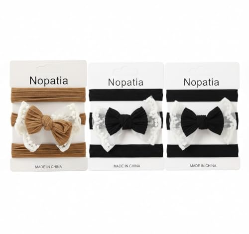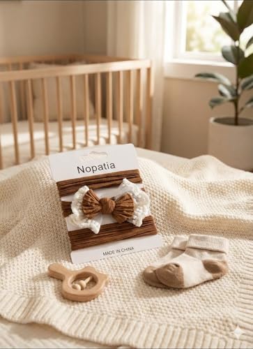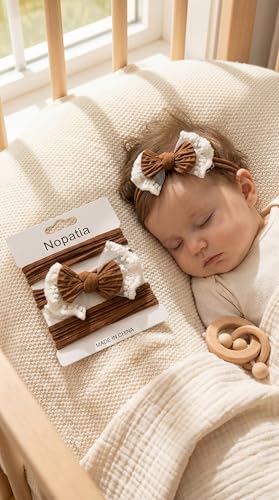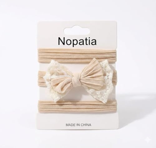 Nopatia - عصابة رأس من Nopatia مطاطية فاخرة للأطفال بفيونكة دانتيل، إكسسوار شعر ناعم ومريح للبنات بتصميم كلاسيكي أنيق، قطعة واحدة مثالية للمواليد والمناسبات (بيج)