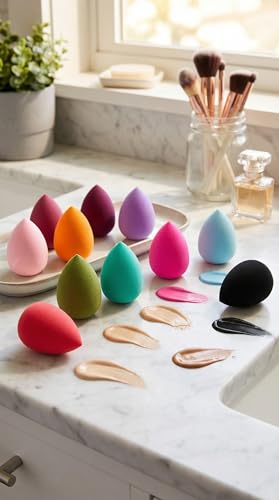 Nopatia - اسفنجة مكياج Nopatia بيوتي بلندر احترافية لدمج وتوزيع كريم الأساس والكونسيلر، ملمس ناعم للمكياج السائل والبودرة، سهلة التنظيف، عالية الجودة وعصرية – 12 قطعه