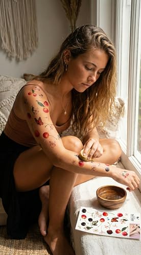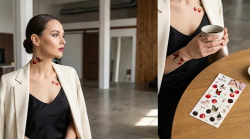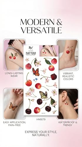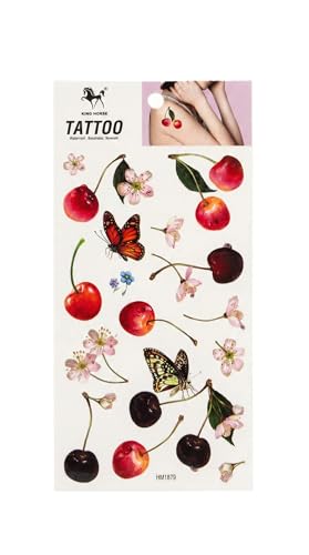 Nopatia - تاتو مؤقت للجسم من Nopatia ضد الماء، ملصقات رسومات كرز وفراشات وزهور، وشم لاصق سهل الاستخدام ومظهر واقعي، زينة للجسم والمناسبات بجودة عالية، قطعة واحدة