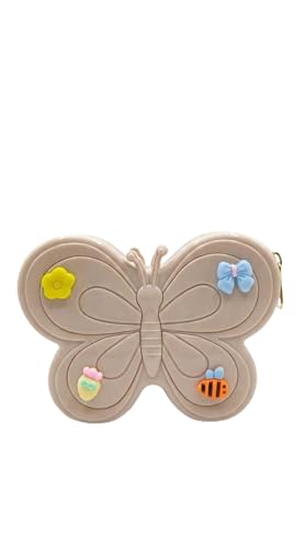Nopatia - حقيبة يد صغيرة بتصميم فراشة من Nopatia - محفظة سيليكون جذابة مزينة برسومات كرتونية - حقيبة تخزين وتنظيم إكسسوارات متنوعة بسحاب متين (بيج)