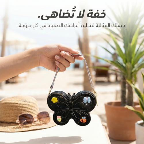 - تصميم فراشة أيقوني وجذاب: تتميز هذه الحقيبة بشكل فراشة فريد يلفت الأنظار، مما يجعلها قطعة إكسسوار مثالية تضفي لمسة من المرح والجمال على المظهر اليومي.
