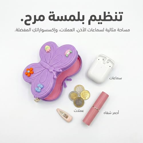 - مثالية لتنظيم الإكسسوارات الصغيرة: توفر مساحة كافية لتخزين العملات المعدنية، سماعات الأذن، إكسسوارات الشعر، أو مستحضرات التجميل البسيطة، مما يجعلها رفيقاً رائعاً في السفر أو التنزه.