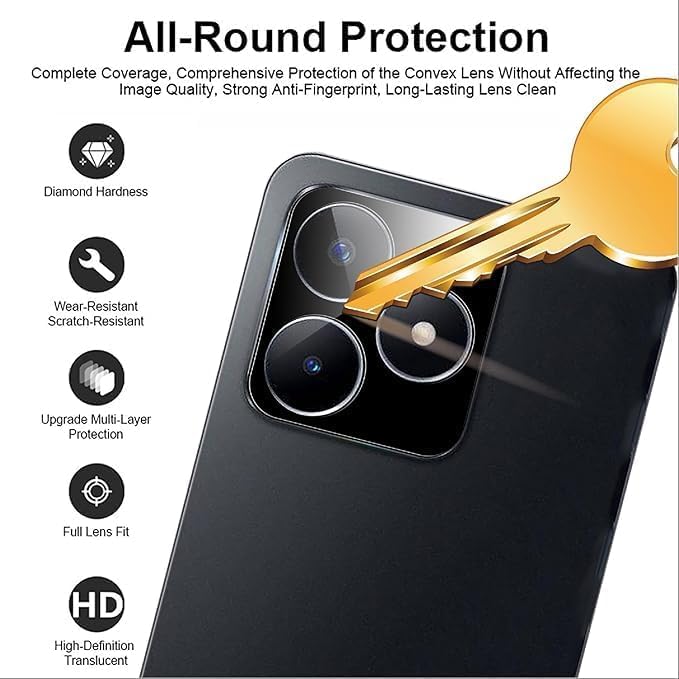 - وضوح فائق النقاء – حافظ على دقة الصور الأصلية مع الـ متوافق مع واقي كاميرا زجاجي لريلمي سي 53 الخاص بنا، والذي يتميز بصلابة عالية ولمحة تصميمية نحيفة وخفيفة الوزن.