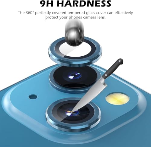 Nopatia - عدسات حماية للكاميرا من Nopatia من الزجاج المقوى والمعدن بدرجة صلابة 9H، حلقة كاميرا معدني مقاوم للخدش [شفاف HD] [مقاوم للتاكل] والصدمات متوافق مع ايفون 14/14Plus (أزرق)