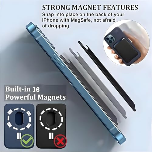 - قوة تثبيت هائلة: لا داعي للقلق بشأن سقوط محفظتك أثناء الحركة. تم تزويد المحفظة بمغناطيسات قوية وعالية الجودة توفر التصاق مغناطيسي قوي، مما يضمن بقاء حامل البطاقات مثبتاً بثبات خلف هاتفك حتى عند إخراجه من جيبك.
