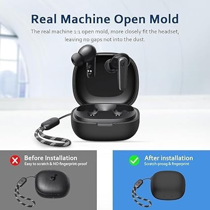 - توافق تام ومثالي: تم تصميم هذا الغطاء بدقة ليكون متوافق مع جراب أنكر ساوند كور P25i، مما يضمن ثباتاً فائقاً يغطي علبة الشحن بالكامل ويحمي سماعاتك اللاسلكية من جميع الزوايا.