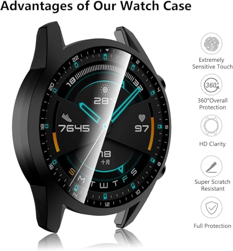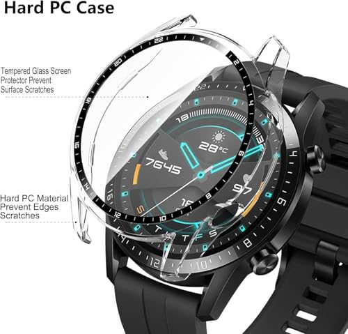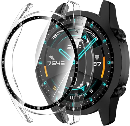 Nopatia - جراب من Nopatia لساعة هواوي جي تي 2 مقاس 46 ملم متوافق مع هواوي جي تي 2 مقاس 46 ملم ممتص للصدمات زجاج مقوى عالي الدقة بولي كربونات شفاف