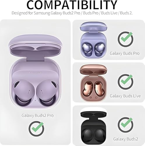 - توافق كامل – مصمم بدقة ليكون متوافق مع سامسونج جالاكسي بودز 2 برو، بودز 2، بودز برو، وبودز لايف. يوفر غطاء حماية لسماعات سامسونج جالاكسي بودز 2 برو هذا ملاءمة مثالية ومحكمة.