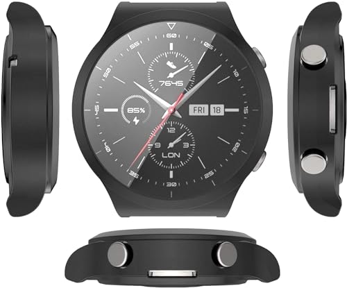 V Volt - جراب حماية لساعة هواوي جي تي 2 برو 46 ملم مع شاشة حماية من في فولت، إطار ممتص للصدمات من البولي يوريثين الحراري الناعم (أسود)