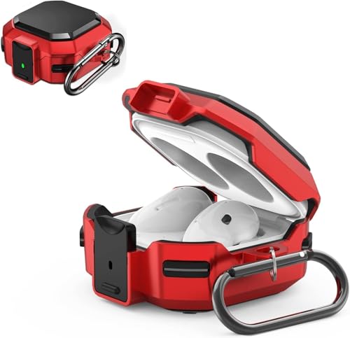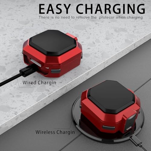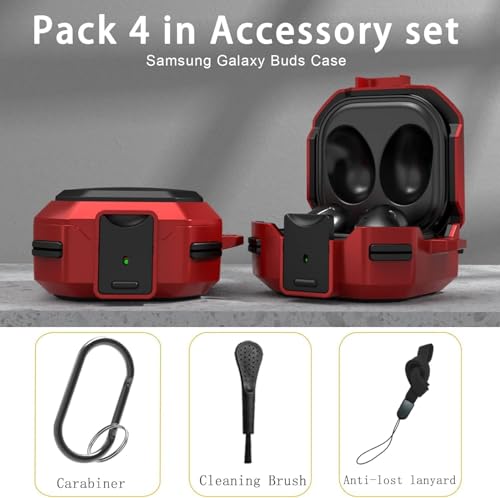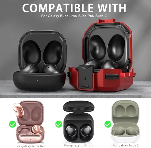 Nopatia - غطاء حماية من Nopatia متوافق مع سماعات سامسونج جالاكسي بودز 2 / برو / لايف، جراب مرن من البولي يوريثين مع قفل أمان وسلسلة مفاتيح، حماية كاملة ضد الصدمات والخدش (أحمر)