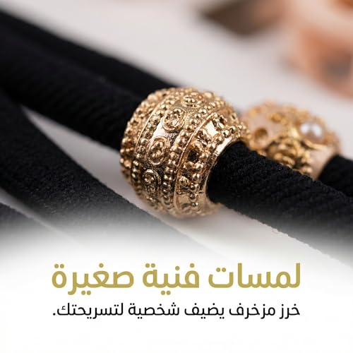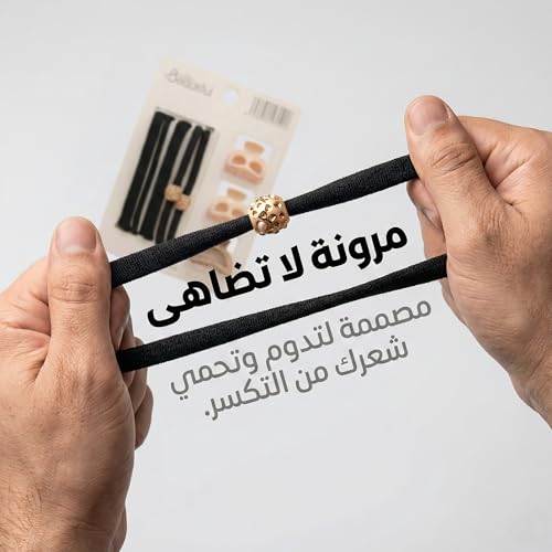 - ربطات مرنة بلمسة جمالية: تتضمن المجموعة ربطات شعر عالية المرونة والمتانة لا تسبب تكسر الشعر، ويزدان بعضها بخرز هندسي صغير ومزخرف يضيف لمسة زينة لطيفة للتسريحة البسيطة.