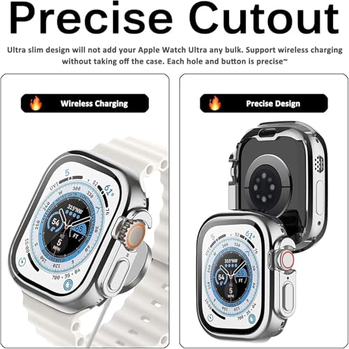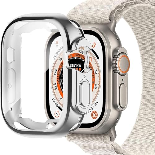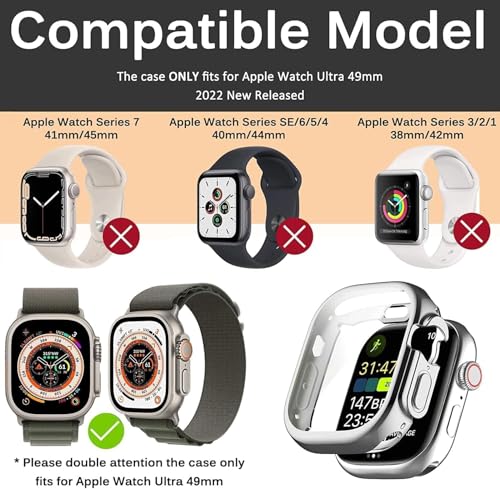 Nopatia - جراب حماية ناعم وتغطية كاملة من Nopatia لـ ساعة أبل الترا 49 ملم، مضاد للخدش وممتص للصدمات، إطار خفيف ومرن واقي للملحقات (لون فضي)