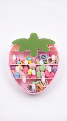 - تصميم فراولة فريد ومبتكر: تتميز هذه المجموعة بعلبة تخزين رائعة على شكل ثمرة فراولة، مما يجعلها قطعة زينة مميزة وسهلة التنظيم للوصول إلى كافة مستلزمات الشعر بسرعة.