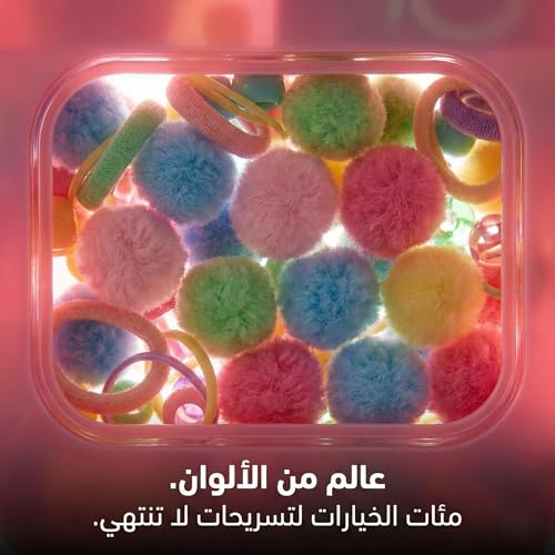 - تنوع هائل في المحتويات: يضم الطقم تشكيلة واسعة من ربطات الشعر المرنة، وكرات الصوف الناعمة، والخرز المزخرف، مما يوفر خيارات غير محدودة لابتكار تسريحات يومية متجددة.