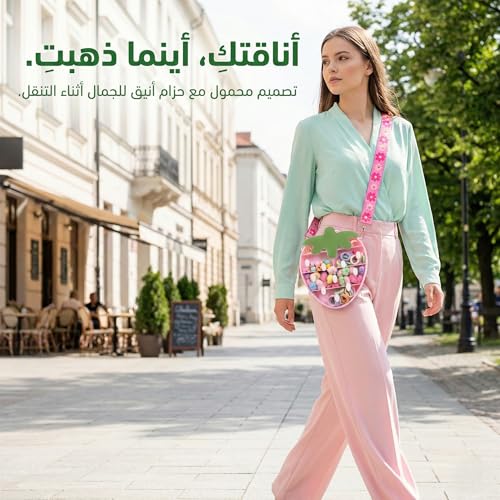 - سهولة الحمل والتنقل: تأتي العلبة مزودة بحزام أنيق وقابل للتعديل يحمل رسومات لطيفة، مما يسمح باصطحاب مجموعة التجميل كاملة أثناء السفر أو الرحلات بكل بساطة وأمان.