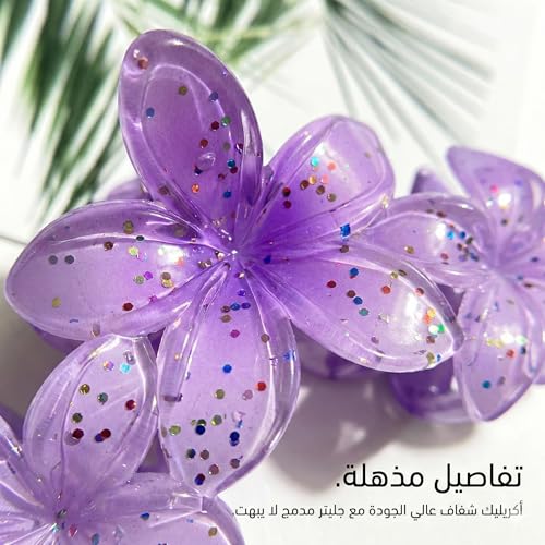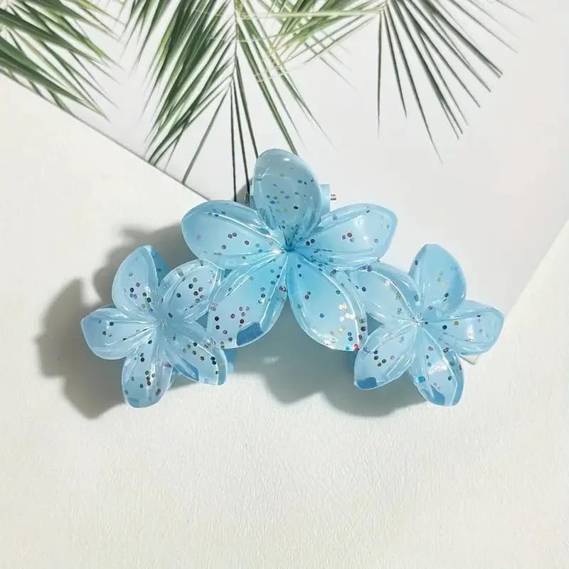 Nopatia - مشبك شعر مخلب من Nopatia بتصميم 3 زهور متصلة مع جليتر لامع، توك شعر اكريليك شفافة بلمسة براقة. مشابك بتصميم هاواي (Plumeria) للصيف والشاطئ، تثبيت قوي وأنيق للشعر (Sky blue)