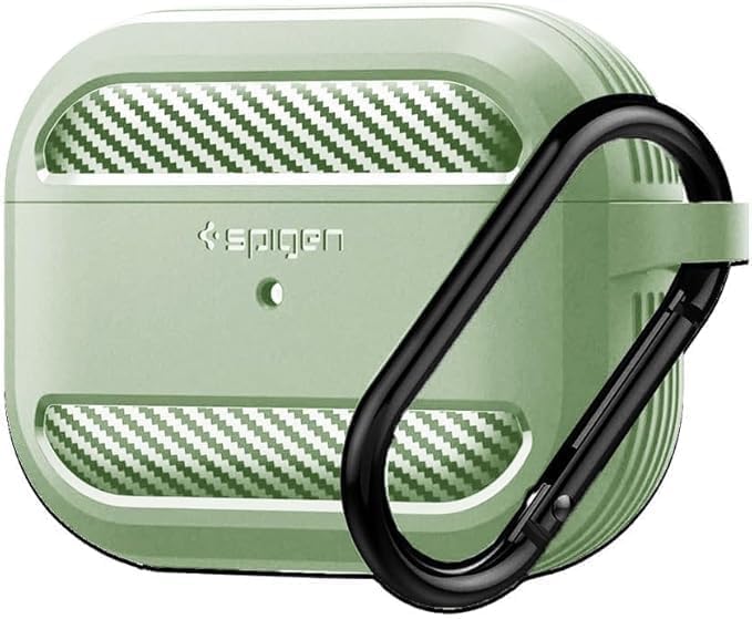 Nopatia - غطاء حماية عالي التحمل من Nopatia لـ ايربودز برو 2 بتصميم تكتيكي مع مشبك معدني لحماية كاملة من الخدوش والصدمات للاستخدام اليومي والرياضي (اخضر فاتح)