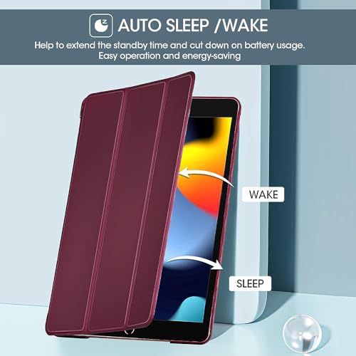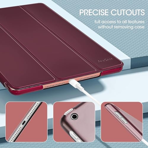 V Volt - جراب حماية قابل للطي مصنوع من البولي يوريثين المقاوم للحرارة الناعم مع حامل قلم آبل من في فولت، حماية كاملة للهيكل متوافق مع آيباد الجيل السابع/ الثامن/ التاسع 10.2 بوصة، لون نبيذي