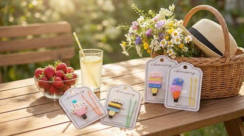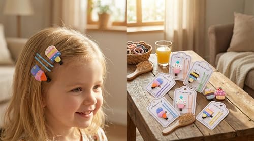 Nopatia - طقم مشابك إكسسوارات شعر الأطفال من Nopatia "الآيس كريم" والمصيصة (دستة 12 باكت)، مجموعة مشابك ودبابيس كرتونية مرحة للبنات، هدايا وتوزيعات مثالية للحفلات والمناسبات (شكل 5)