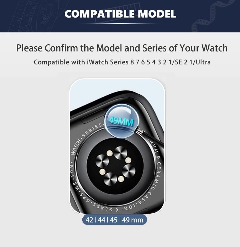 - ✪【الموديل المتوافق】 سوار ساعة جلدي متوافق مع ساعة ابل 42 ملم 44 ملم 45 ملم 49 ملم متوافق مع ابل الترا 2 الترا اس اي اس اي 2 سلسلة 9 8 7 6 5 4 3 2 1، يرجى اختيار مقاس السوار الصحيح بناءً على الموديل الموجود على الجزء الخلفي من الساعة