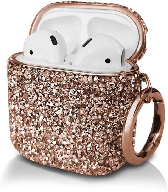Nopatia - غطاء حماية مخصص من Nopatia لـ سماعات ايربودز 3 (الجيل الثالث) بتصميم كريستال فاخر مع ميدالية، حافظة صلبة لامعة مضادة للصدمات والخدش للنساء والبنات (روز جولد)