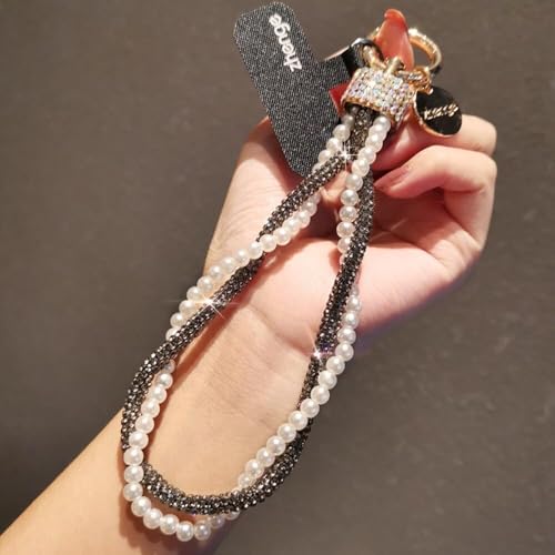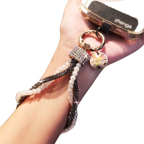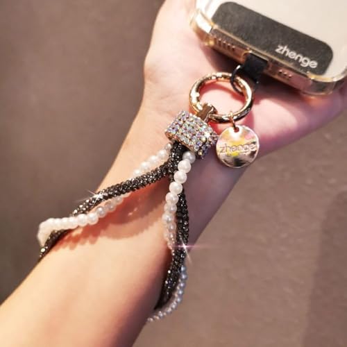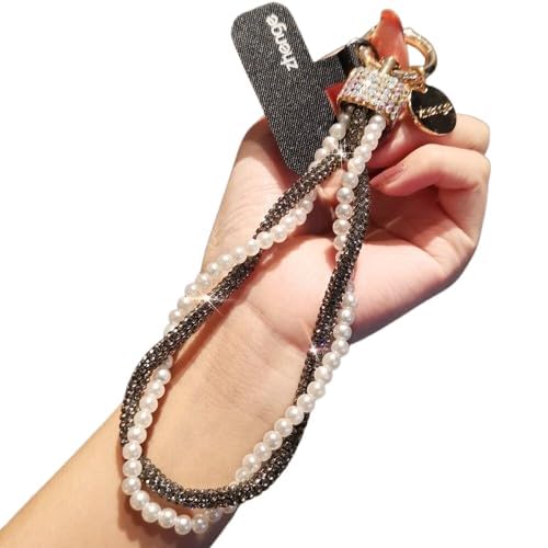 Nopatia - سوار معصم للهاتف من Nopatia مقاس عالمي تصميم لامع حامل يد مضاد للسقوط تعليقة مفاتيح آمنة اكسسوار موضة خفيف الوزن للمفاتيح وجرابات الموبايل مقاس واحد (اسود)