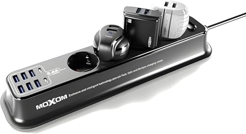 Nopatia - مشترك من Nopatia طاقة 2500 واط 12 في 1 مع 4 مقابس مضادة للكهرباء الساكنة و2 منفذ تايب سي و6 منافذ يو إس بي للشحن السريع كابل 2 متر متوافق مع آيفون 15 وسامسونج جالاكسي S24 ولابتوب